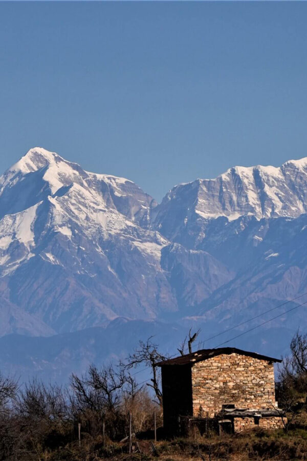 Hartola is a scenic village about 70 km (2.5 hours) from Kathgodam and ~370 km (8–9 hours) from Delhi. The drive takes you from the Terai’s Sal and Teak forests to cool pine and oak slopes. En route, you pass Bhimtal, glimpse Nainital, and at Gagar witness your first majestic view of Trishul and Nanda Devi. The road winds past orchards, riversides, and quiet deodar forests, offering Himalayan views at every turn. At Hartola zero-point stands DevShakti Chalet, your mountain retreat. Here, caretaker Umesh Ji welcomes you with hot pakoras and nimbu chai, making you feel instantly at home.