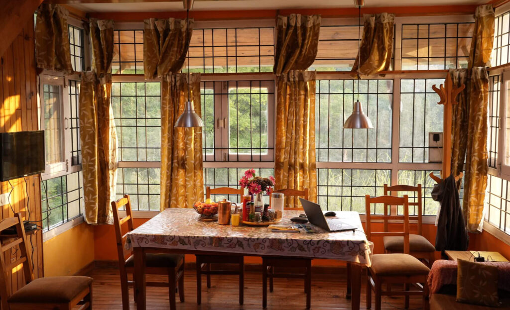 Experience the charm of the mountains in complete privacy with our full chalet offering — Namindrani, SanDiya, and DebTaniya — spanning a total of 1176 sq ft of thoughtfully crafted spaces. With 3 spacious bedrooms, multiple private balconies, a sun-soaked dining lounge, writing nooks, garden-side seating, and panoramic views of the Himalayas, orchards, and royal valley, DevShakti is designed for moments that linger. Enjoy fresh hill air, cozy wooden interiors, a stone-clad fireplace, organic kitchen produce, seasonal fruits, and personalized hospitality. Ideal for families or close-knit groups seeking a soulful mountain retreat.