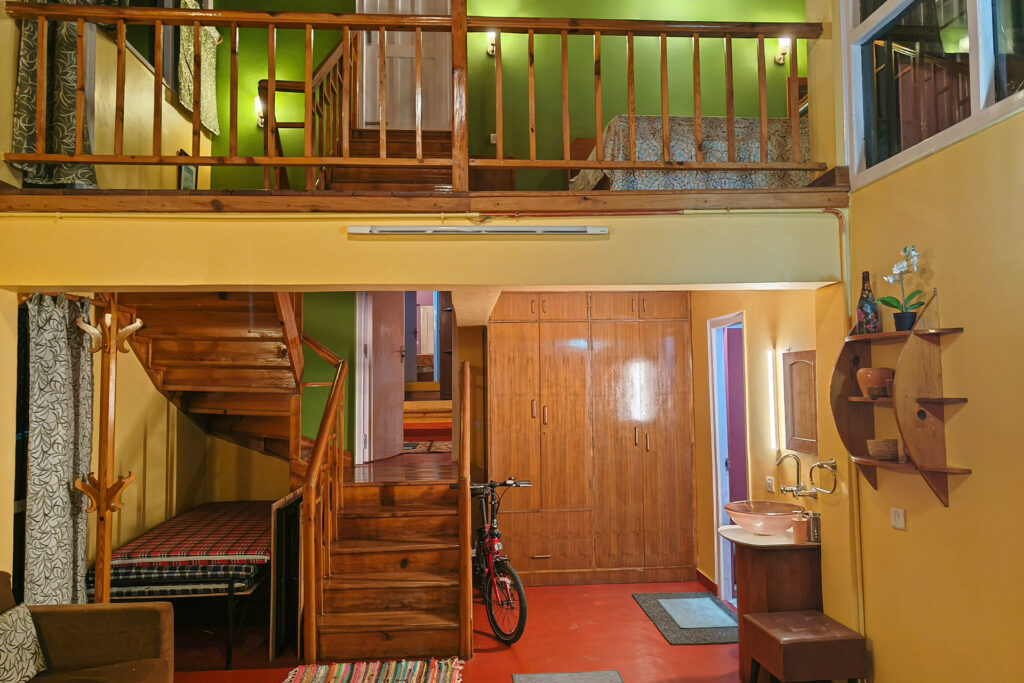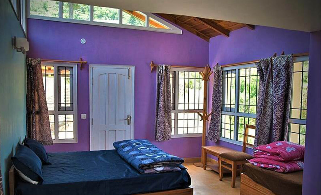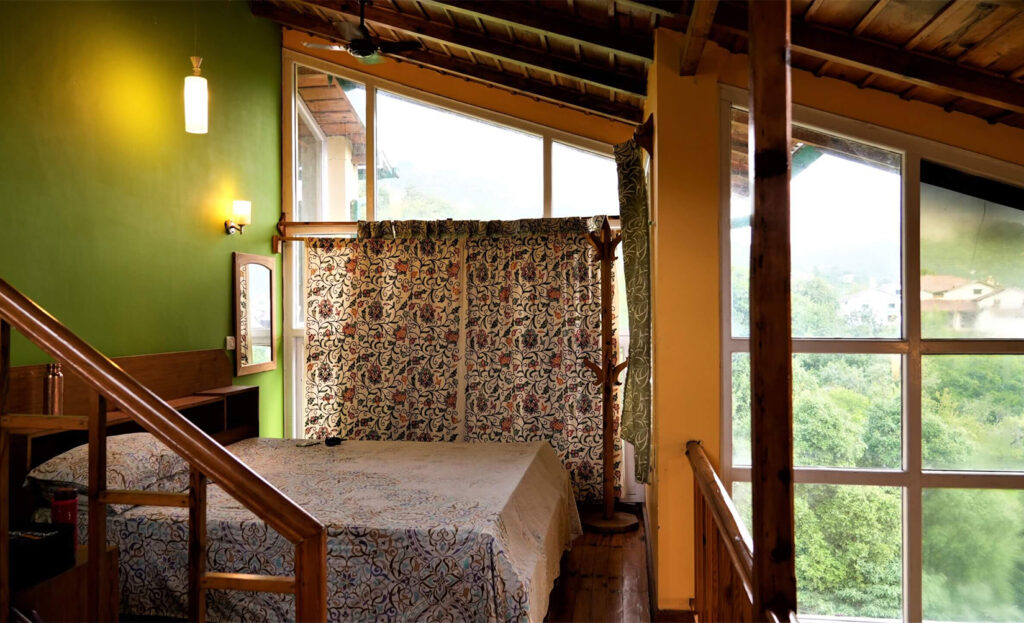 A thoughtfully designed duplex suite that captures the essence of mountain living. Spanning 535 sq ft, this spacious retreat features panoramic Himalayan and orchard views, cozy interiors, and a blend of functionality and charm across two private levels.